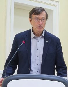 С докладом выступил д.т.н., профессор Михаил Юрьевич Беляев (ПАО «РКК «Энергия» им. С.П. Королева») – заведующий кафедрой систем автоматического управления космического факультета Мытищинского филиала МГТУ им. Н.Э. Баумана, действительный член Международной общественной организации «Академия навигации и управления движением» (на фото).